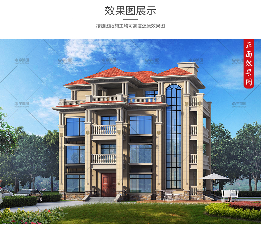 成品圖紙>180平豪華大氣帶堂屋4層樓房新款圖片及設計圖紙