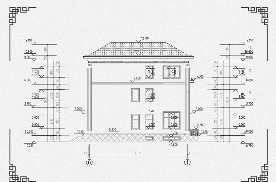 | 開間:13.24米 | 進深:11.92米 | 占地面積:153.9平方米 | 建筑面積:564.1平方米 |