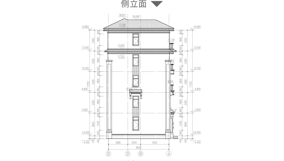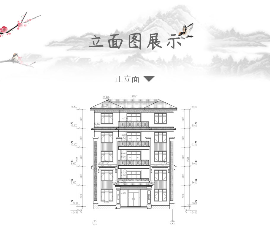 建筑立面圖:東立面圖,西立面圖,南立面圖,北立面圖,剖面圖;