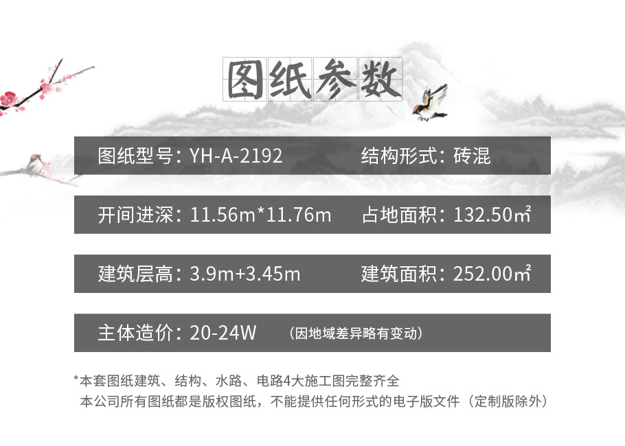 | 風格:新中式 | 層數:二層 | 結構形式:磚混結構 | 圖紙編號:YH-A-2192 |