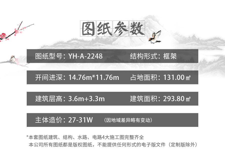 | 風格:新中式 | 層數:二層 | 結構形式:框架結構 | 圖紙編號:YH-A-2248 |