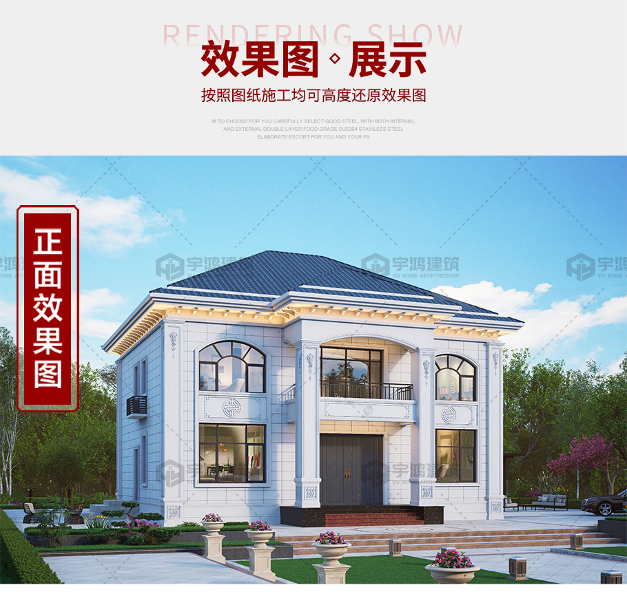 成品圖紙>開間14.26進深13.32二層歐式別墅全套圖紙