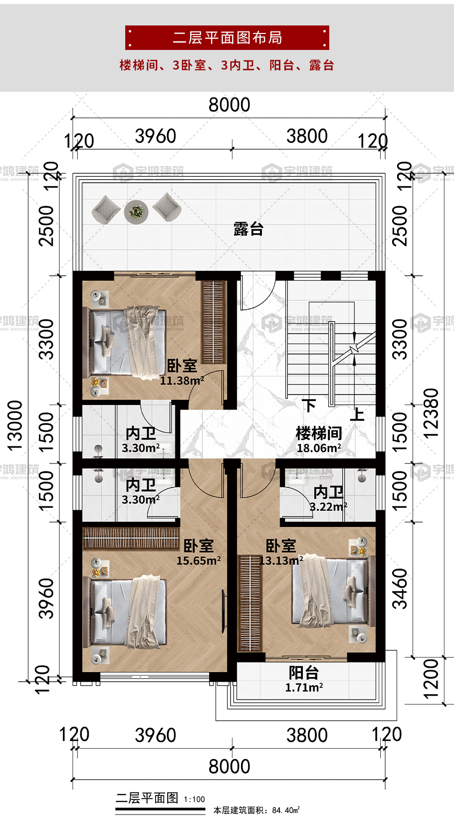 樓層給排水平面圖:一層給排水平面圖,二層給排水平面圖,閣樓層給排水平面圖; 屋頂給排水平面圖; 衛生間排水系統圖 |