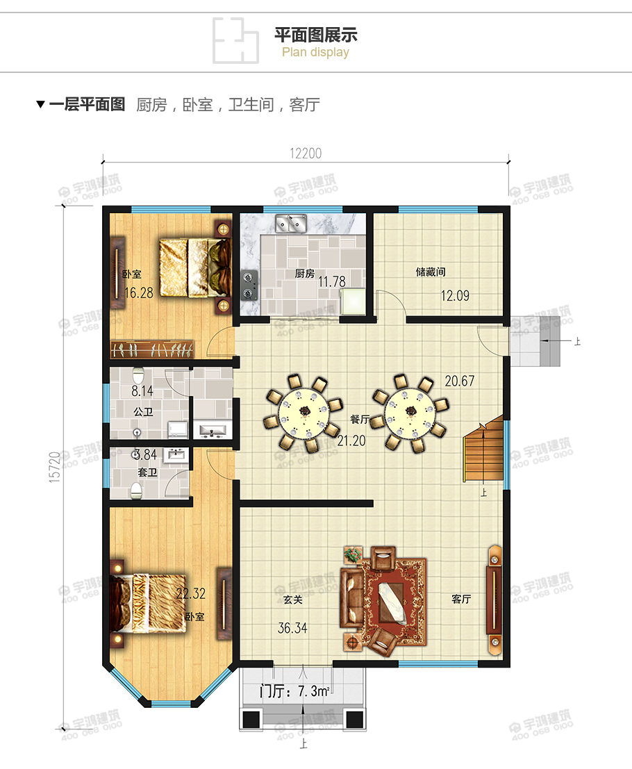 | 開(kāi)間:12.2米 | 進(jìn)深:15.72米 | 占地面積:171.7平方米 | 建筑面積:390平方米 |